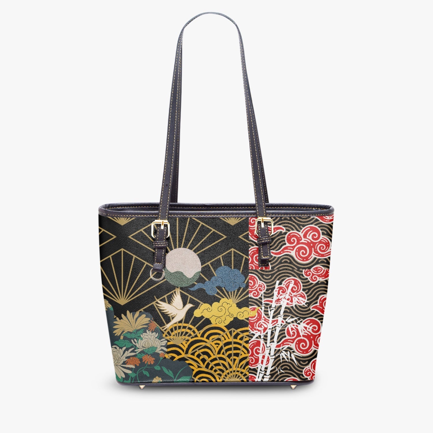 🌺 Spring Prints on black 🌷 pu leather tote