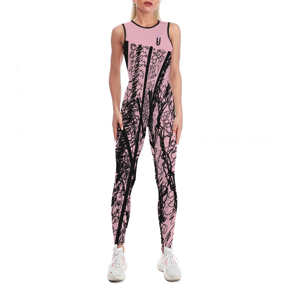 All-Over Print Women's Long-sleeved High-neck Jumpsuit With Zipper